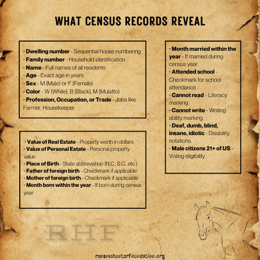 While census records do not make up the majority of our research, census records support our genealogical investigation into Ransom Hunter’s remarkable life. These government snapshots, taken every ten years, allow us to track his journey from young man to successful entrepreneur across four decades of American history. Each census provides not just basic facts about age, occupation, and family members, but also clues that guide our research in exciting new directions.